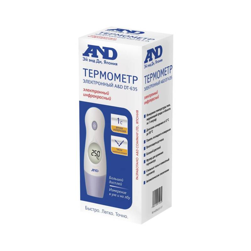 İnfraqırmızı, civəsiz termometr 1 saniyədə bədən istiliyini dəqiq ölçür. Ölçmənin sonunda və 38°C-dən yuxarı temperaturda səs siqnalı işə düşür. Havanın və ətrafdakı obyektlərin təmassız temperaturunun ölçülməsi funksiyasına malikdir.