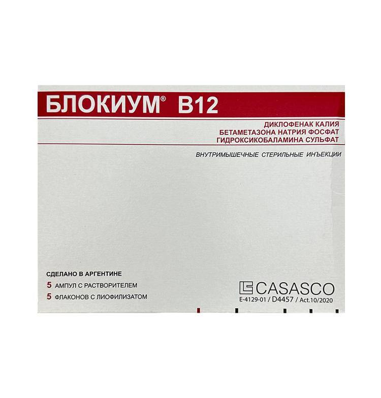Stokda olanda mənə xəbər verin.BLOKİUM B12 tərkibi, 1 ampulda 75,0 mq diklofenak kalium, 2,63 mq betametazon natrium fosfat; hər bir flakonda 10 mq hidroksikobalamin vardır