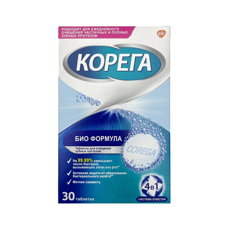 Koreqa protez təmizləyici tablet sayəsində daha geniş və təmiz ağız quruluşu əldə edilir. 1 ədəd təmizləyici tableti ilıq suda həll edin, protezi içində 3-4 dəqiqə saxlamanız kifayət edir. Çıxardıqdan sonra diş fırçasıyla bol suda yuya bilərsiniz.