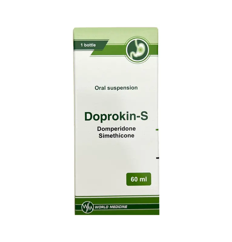 Stokda olanda mənə xəbər verin.Doprokin-s tərkibi, 1 ml suspenziyanın tərkibində 1 mq domperidon, 4 mq simetikon vardır. Köməkçi maddələr: saxaroza, limon turşusu monohidrat, kristallaşmayan sorbitol məhlulu, natrium karmelloza, “Ananas” aromatizatoru, polisorbat 80, natrium metilparahidroksibenzoat, natrium propilparahidroksibenzoat, titan dioksid, təmizlənmiş su.