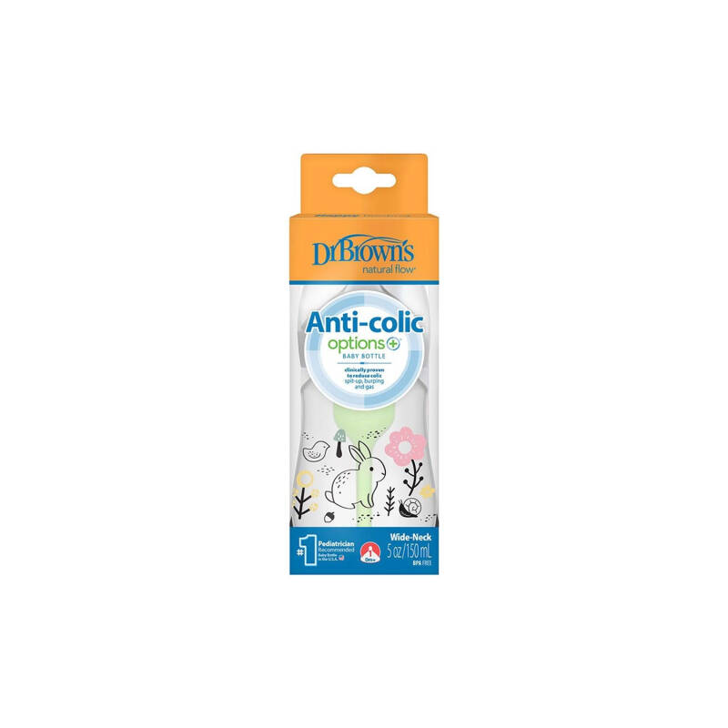 DR.BROWN S WB51009-SPX/1088 WIDE-NECK ANTI-COLIC OPTIONS+BABY BOTTLE WOODLAND BUNNY 150ML 0M+