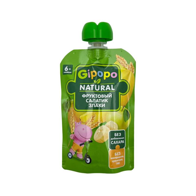 Gipopo Meyvə və Dənli Bitki Püresi 90 q Uşaq Qidası uşaqların əlavə qidaya keçid dövründə meyvə və tərəvəz dadlarını mərhələli şəkildə tanıması üçün nəzərdə tutulub.