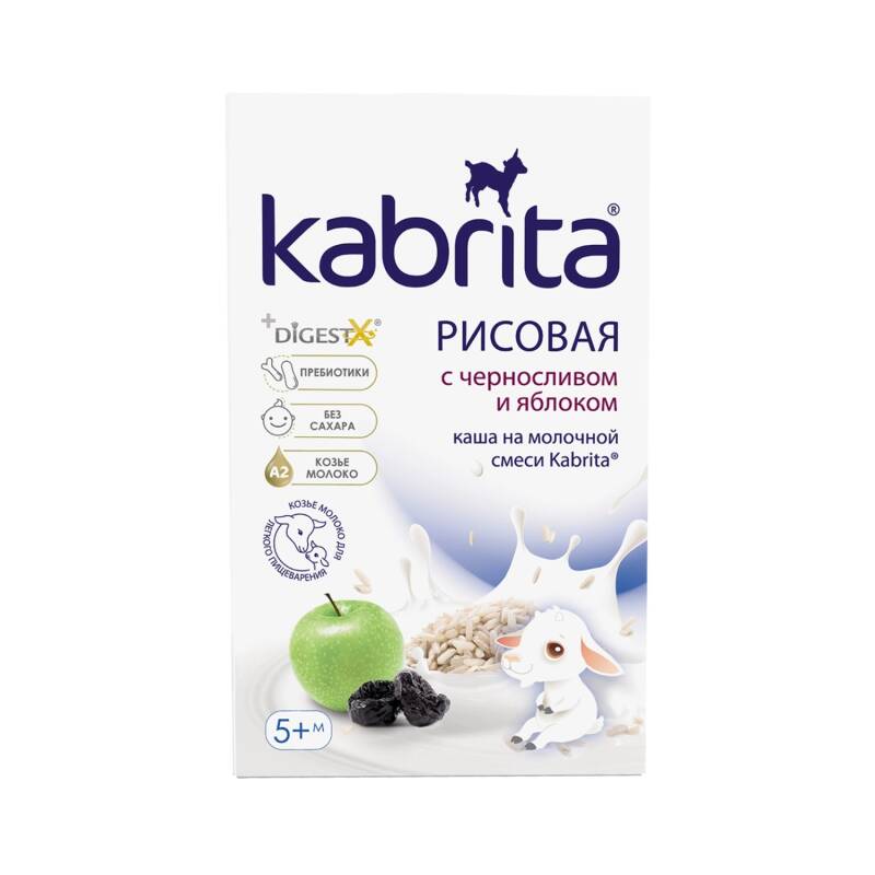 Zərif taxıl parçalanma texnologiyası həzmi asanlaşdırır və taxılın təbii şirinliyini qorumağa kömək edir.Kabrita sıyıqları keçi südü əsasında hazırlanmışdır və tərkibində zəngin vitamin və minerallar kompleksi və FOS prebiyotikləri var.Sıyığın yumşaq,qaymaqlı dadı var.