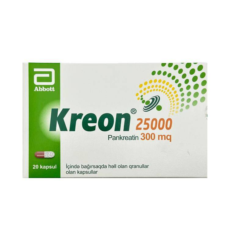 Stokda olanda mənə xəbər verin.KREON® 25000 (KREON® 25000) bağırsaqda həll olan kapsullar (içində bağırsaqda həll olunan qranullar (Kreon minimikrosferalar™) olan bərk jelatin kapsullardır)