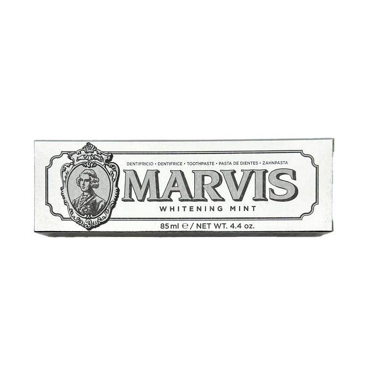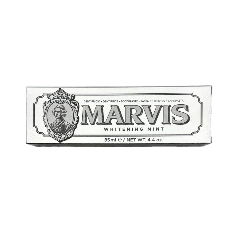 Xoş emosiyalar bəxş edən bəyaz gülümsəməniz üçün Marvis-in ağardıcı diş məcunu. Fərqli ölçüdə olan mineral turşuların qranulaları diş minasını zədələmədən cilalayaraq yüksək ağardıcı təsir göstərir. Kariyesdən müdafiə edən və ağız boşluğu florasının bakteriyalara qarşı davamlılığını artıran flüor və ksilitol tərkiblidir. Tərkibində kimyəvi və heyvan mənşəli birləşmələr yoxdur. İstehsal ölkəsi: İtaliya