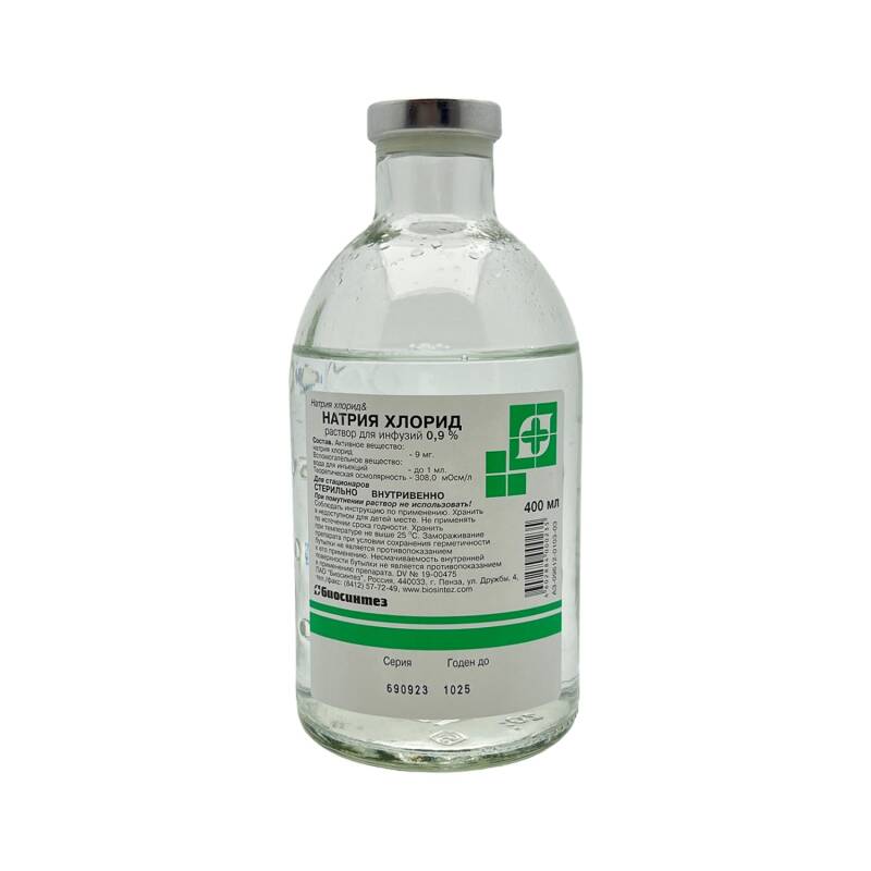 Natrium xlor izotonik məhlul infuziya şəklində vena daxili istifadə olunur.