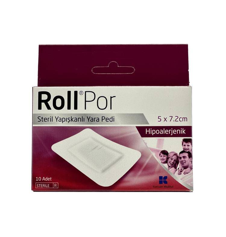 Roll Por özündən yapışqanlı 5sm-7,2sm ölçüdə steril yara yastığıdır. Ortasındakı əmici yastığı yaraya yapışmır. Məsaməli quruluşu dərinin nəfəs almasına kömək edir. İstifadə edərkən yara yastığına toxunmayın. Bandı təmiz və quru halda dəriyə yapışdırın.