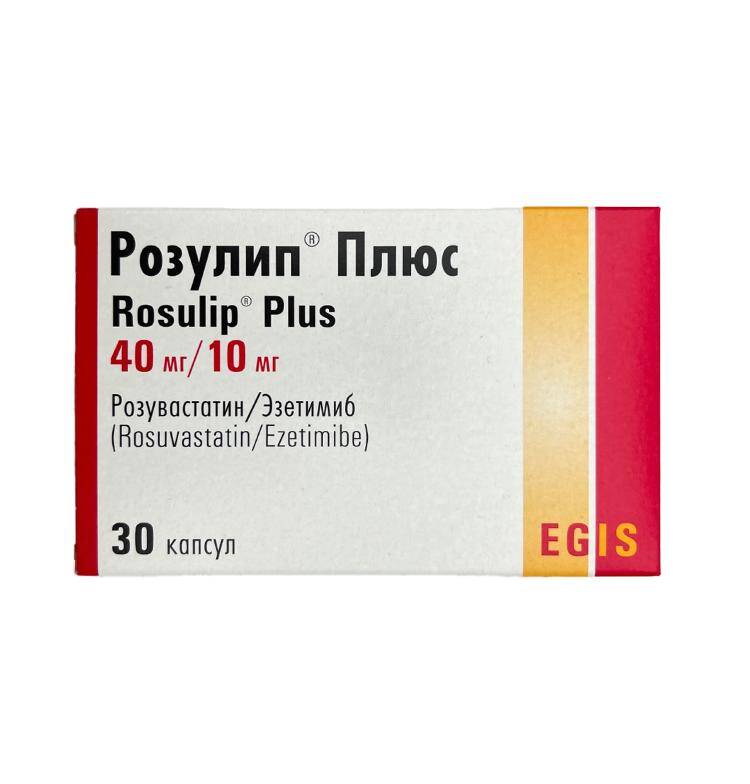 1 kapsulun tərkibində 40 mq rozuvastatin, 10 mq ezetimib vardır. Rozulip plyus böyüklərdə ilkin hiperxolesterinemiyanın müalicəsi üçün göstərişdir: - rozuvastatinlə monoterapiya zamanı xəstəliyə qeyri-kafi nəzarət zamanı; fiksəolunmuş kombinasiyada olduğu kimi hər iki ayrı-ayrı maddələrin eyni dozada birlikdə istifadəsi zamanı xəstəliyə kifayət qədər nəzarət olan pasiyentlərdə terapiyanı əvəzləyici qismində.